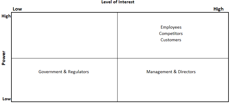 Mendelow’s Matrix for for shareholders